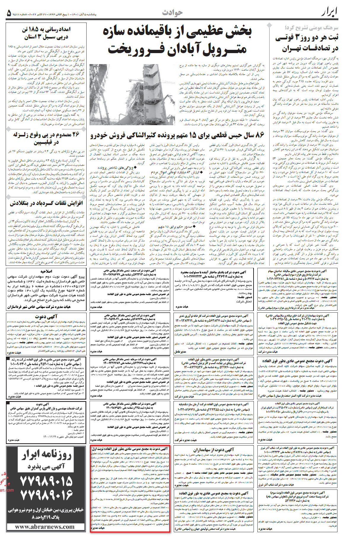 بدینوسیله به اطلاع میرساند جلسه مجمع عمومی عادی بطور فوق العاده شرکت تعاونی مسکن کارکنان خدمات اجتماعی شهرداری تهران به شماره ثبت 330794 در ساعت 10 صبح روز جمعه 1401/09/11 در دفتر تعاونی به آدرس : دولتخواه - خیابان برادران شکری - انتهای خیابان بهلولی - پروژه سبحان برگزار میگردد. از کلیه اعضا دعوت میشود شخصاَ یا وکالتاَ جهت اتخاذ تصمیم نسبت به موضوعات ذیل در این جلسه حضور به هم رسانند.